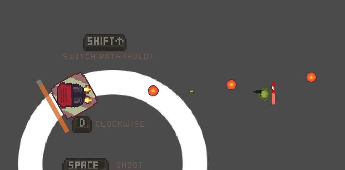 Turret Loop is an arcade shooter that uses path-building mechanics, similar to train track and city-building games, to let the player traverse and gain more space to dodge incoming bullets.